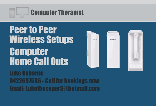 Able to help with all IT related needs: Router Setups Peer to Peer Wireless Solutions Internet Troubleshooting Computer Issues Printer Problems At Home or in Business Call Outs Home Computer Setup 0422697586 Call Now CONTACT FOR INQUIRIES Go backYour message has been sent Name(required) Warning Email(required) Warning (required) Warning Warning. Send InquirySubmitting form Δ